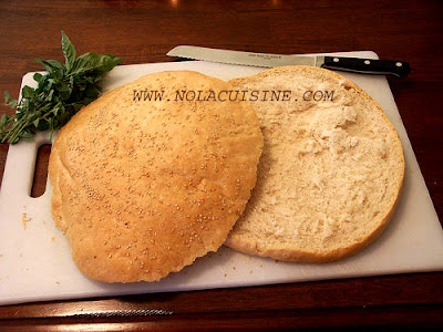 Odds are, if you live outside of the city of New Orleans, you’re not going to find an authentic Muffuletta Bread, with the exception of mail order. That’s a dilemma, because without the right bread, it’s just not a Muffuletta. It needs to be a round Italian style loaf that is about 10″ across and has sesame seeds on the top. Good luck finding it! So do what I do, make your own! I based this recipe on the one from Terry Thompson’s wonderful book Cajun-Creole Cooking, with a few changes. This is actually a very easy bread recipe. The object is a nice crisp crust and a light center, you don’t want a real chewy, hearty bread for this sandwich. Well, you might, but I don’t; who am I to speak for you. Anyway, here is my version:
